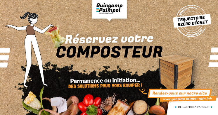 Guingamp-Paimpol Agglomération facilite la pratique du compostage pour les habitants de son territoire en proposant à la vente un kit de compostage au prix réduit de 25€.